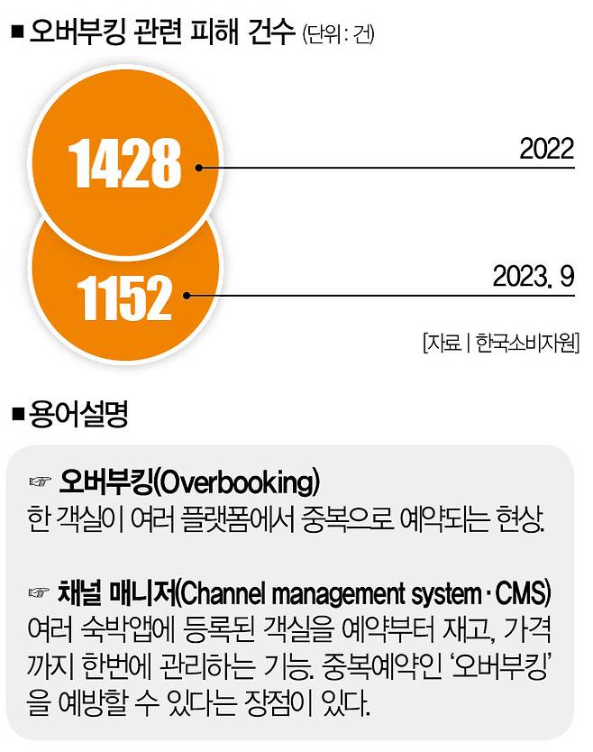 ■ 허점➋ 오버부킹 = 분명히 돈을 내고 예약했는데, 막상 숙소에 가보니 자리가 없는 '최악의 상황'을 겪는 소비자도 있습니다. 이런 상황이 발생하는 건 '오버부킹(Overboo king)' 때문인데, 한 객실이 여러 숙박앱에서 동시에 예약되는 현상을 뜻합니다.