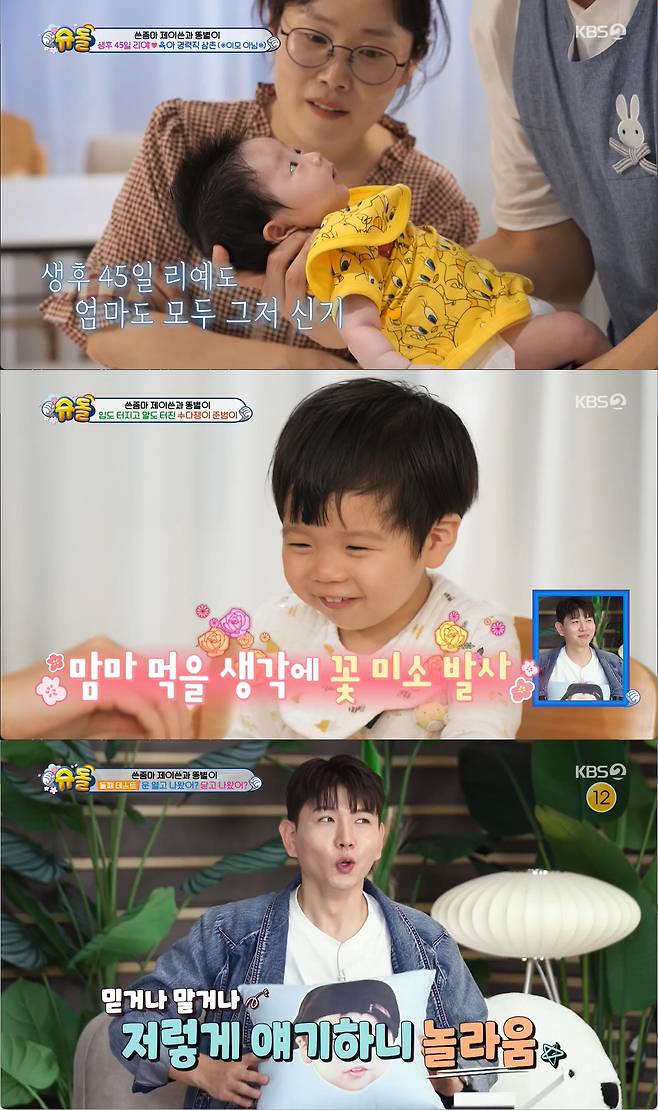 제이쓴 아들 준범이가 '동생'을 시사해 제이쓴을 놀라게 했다.