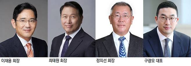 12일 재계에 따르면 이재용 삼성전자 회장, 최태원 SK그룹 회장, 정의선 현대자동차그룹 회장, 구광모 ㈜LG 대표 등을 비롯한 10대 그룹 주요 총수들은 대한상공회의소 주관으로 27일 개최되는 한일중 비즈니스 서밋 행사에 참석을 추진 중인 것으로 확인됐다.
