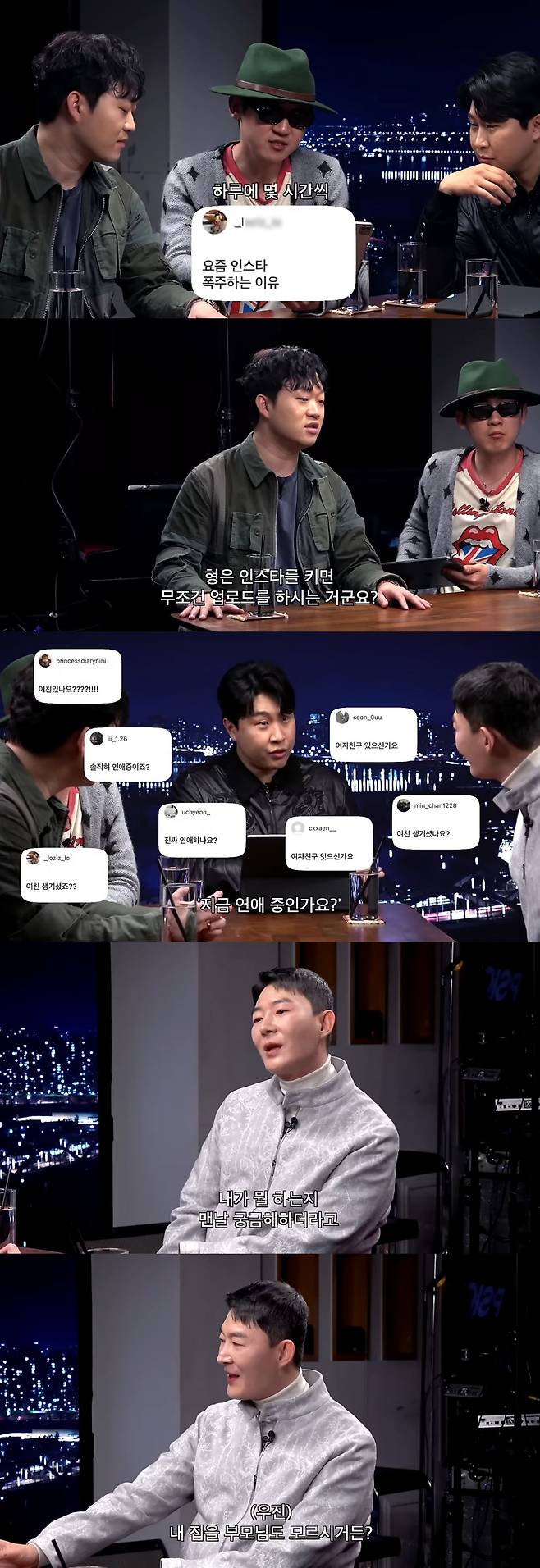 첫 번째 질문은 요즘 폭주 중인 현우진의 SNS였다. 하지만 현우진은 항상 촬영하는 탓에 2시간 정도 휴대폰을 사용한다고 대답해 세 사람을 놀라게 했다.