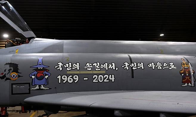 고별비행에 나선 4대 중 2대에는 한국 공군 F-4의 옛 도색이었던 정글 위장 무늬와 연회색 도색을, 나머지는 현재의 진회색 도색으로 비행했다. 동체 측면에는 ‘국민의 손길에서, 국민의 마음으로 1969-2024’라는 기념 문구와 함께 F-4를 상징하는 스푸크(spook·유령)가 그려졌다.