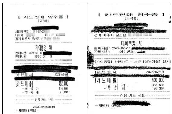 | ▲ 고양지청이 공개한 2023년 2월 7일 업무추진비 / 특정업무경비 카드영수증 |