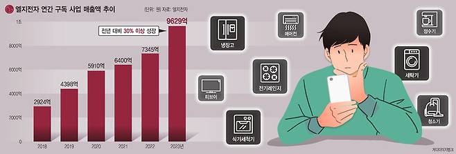 엘지전자 관계자는 “일시불로 살 때보다 비쌀 수는 있지만, 할인 혜택 등을 이용하면 부담을 다소 낮출 수 있다”며 “한 번에 목돈을 지출하기 어려운 이들이 고가의 가전을 마련하고자 할 때 구독 서비스가 도움이 될 수 있다”고 말했다.