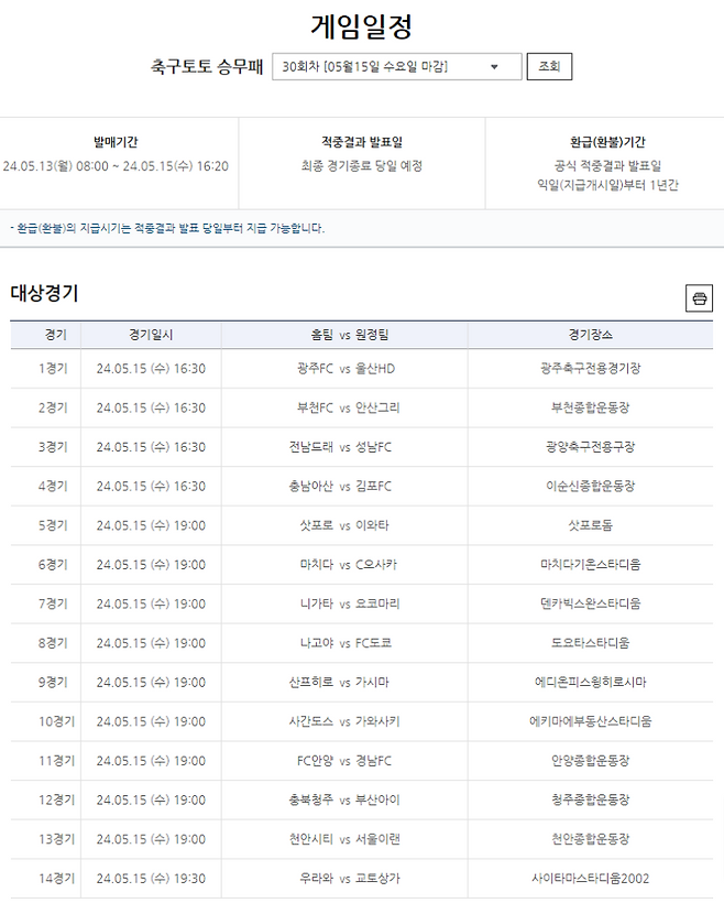 이어 진행되는 축구토토 승무패 30회차는 오는 5월 13일(월) 오전 8시에 발매를 개시하며, 오는 5월 15일 오후 4시 20분까지 전국 스포츠토토 판매점 및 공식 온라인 발매 사이트 베트맨을 통해 구매가 가능하다.