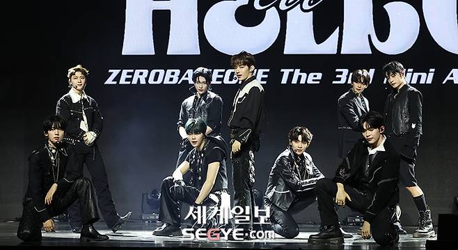 그룹 제로베이스원이 13일 오후 서울 용산구 한남동 블루스퀘어에서 열린 미니 3집 '유 해드 미 앳 헬로우(You had me at HELLO)'의 쇼케이스에 참석해 포즈를 취하고 있다.