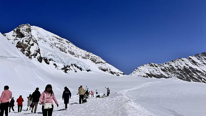 사실 빙하 속을 깎아 만든 '얼음 궁전'도 걷고, 유럽에서 가장 긴 빙하(알레취 빙하)도 가까이서 보고, 눈썰매 같은 액티비티나 고원 지대 하이킹도 즐겨야 융프라우에서 스위스 여행의 정점을 찍었다고 비로소 말할 수 있을 것이다. 하지만 양쪽 무릎을 수술해서 걸음이 불편한 영숙씨와 그런 영숙씨를 보필해야하는 나로서는 그런 경험을 해보지 못했다.