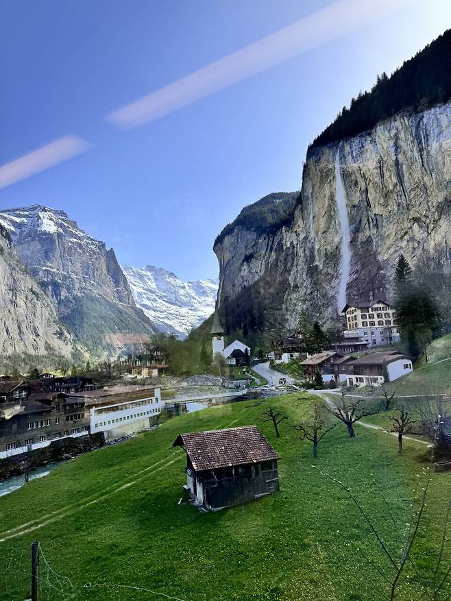 융프라우요흐의 설원도 아름다웠지만 영숙씨와 나를 더 깊이 매료시킨 것은 알프스의 마을들이었다. 융프라우 전체를 한편의 전원 교향곡이라고 한다면 알프스의 골짜기들은 조금씩 변주되는 각각의 악장과도 같았다. 장엄하면서도 소박하고, 느릿하면서도 생명력에 넘친다. 비슷한듯 서로 다르다. 능선을 따라 넓게 퍼져있는 그린델발트가 탁 트인 느낌을 준다면, 깊은 빙하 협곡에 폭 파묻힌 라우터브룬넨은 좁고 비밀스러웠다.