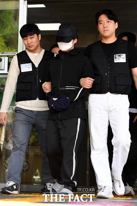 [더팩트ㅣ임영무 기자] 여자친구를 흉기로 살해한 의대생 최모 씨가 14일 오전 서울 서초경찰서에서 서울중앙지검으로 송치되고 있다.