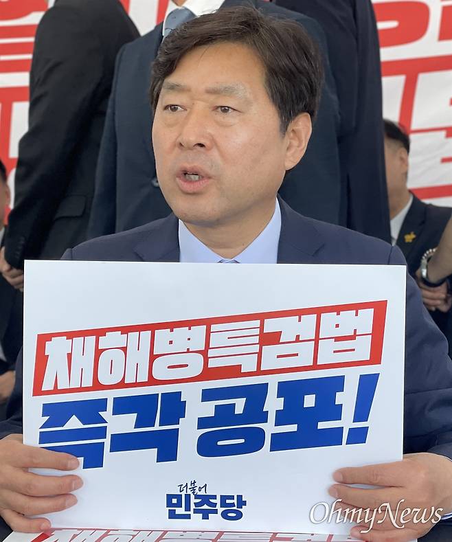 "채 해병은 제 후배이기도 하다. 만약 특검법에 거부권을 행사한다면 지금보다 더 강력하게 국민들과 투쟁하겠다. 우리 당 차원뿐만 아니라 모든 야당이 동참하고 시민사회가 들고 일어날 거다. 더 나아가 국민들은 대통령과 국회의원에게 단순히 권력을 위임한 게 아니다. 그들이 위임한 것은 국민을 존중하고, 공정한 대한민국을 만들고, 어려운 상황에 놓여 있는 이들까지 함께 보듬어 공동체를 만들어가자는 뜻이다. 그런 국민 10명 중 7명이 채 해병 특검법을 요구하고 있다. 정말 대통령이 채 해병 사건에 대해 떳떳하고 진실하다면 특검을 수용할 거라고 본다."