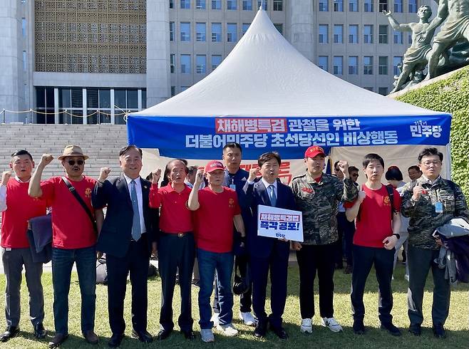 이에 민주당 초선 당선인들은 지난 10일부터 '채 해병 특검 관철을 위한 비상행동'을 선포하고 국회 본청 앞 천막 농성을 진행하고 있다. 국무회의 전날인 13일엔 서울 용산구 대통령실 앞을 찾아 '채 해병 특검법 공포 촉구 기자회견'을 열기도 했다. 다음은 지난 13일 오후 국회 본청 농성장에서 황명선 당선인과 나눈 일문일답.