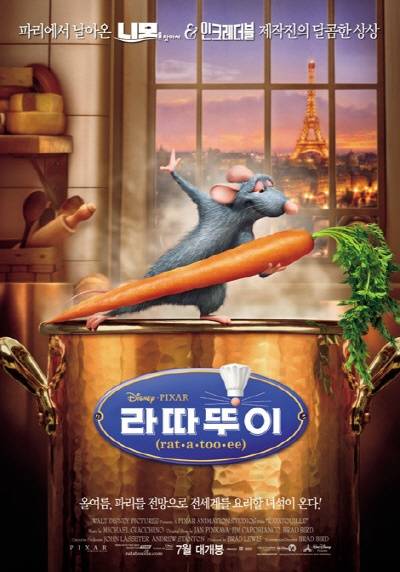지금의 디즈니를 있게 했던 캐릭터가 바로 미키 마우스다. 미키 마우스는 쥐고, 레미 또한 쥐다. 미키 마우스의 후예를 주인공으로 삼아서 디즈니와 픽사의 영웅담을 들려주는 이 깜찍한 영화가 놀랍다. 관객들은 디즈니의 고전들에서나 느낄 수 있었던 감동적인 이야기가 픽사의 진보한 기술력과 만나 폭발하는 모습을 목도하게 된다. 눈에 띄게 독창적인 설정은 아닐지라도 <라따뚜이>가 안정적인 전개와 위트 넘치는 장면들이 어우러진 완성도 있는 결과물이라는 데 반박할 이는 없을 것이다.