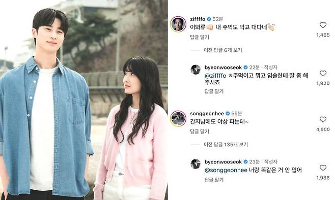 이 가운데 '선업튀' 배우들이 소셜네트워크서비스에서도 극 중 연기에 몰입해 시선이 쏠린다.