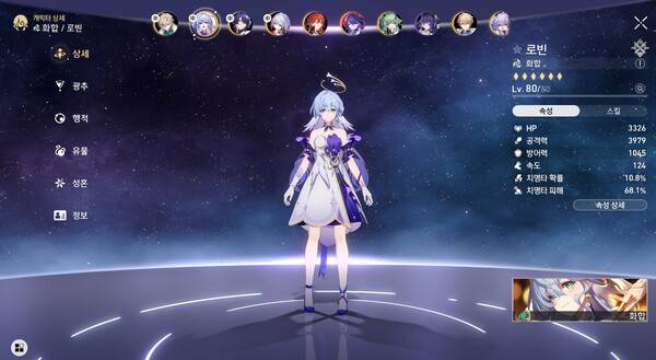 호요버스 '붕괴: 스타레일' 2.2 버전 전반부 신규 캐릭터 '로빈'은 추가 공격 파티 전용 서포터다. 필살기 파티 전체 재행동 유틸로 0라운드 클리어 머신으로 주목받았다.