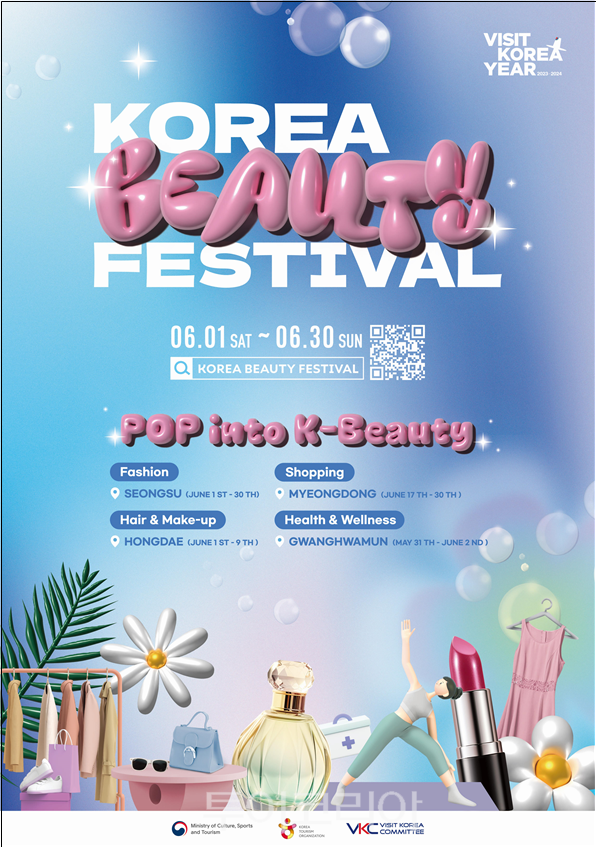 [투어코리아=유경훈 기자] 방한 외국인 관광객들의 관심이 높은 K-뷰티를 테마로한 '코리아뷰티페스티벌'이 6월 한달간 홍대·성수·명동·광화문 등 서울 주요 지역을 중심으로 펼져니다.