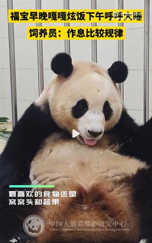 지난 15일 촬영된 1분짜리 영상에는 푸바오가 워룽중화자이언트판다원(臥龍中華大熊猫苑) 선수핑기지(神樹坪基地)의 격리·검역 구역의 철창에 반쯤 기대어 누운 채 옥수수빵을 맛있게 먹는 장면이 담겼습니다.