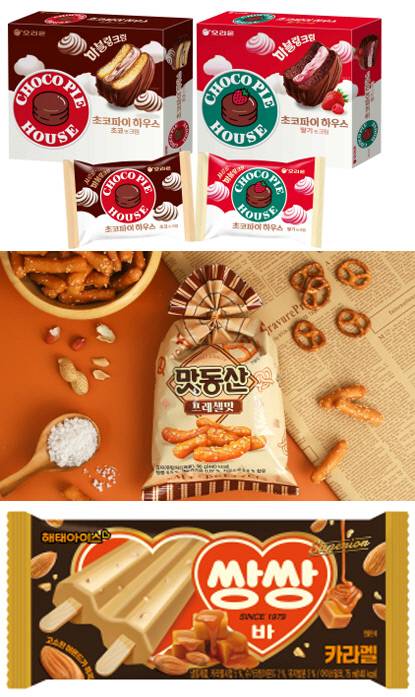 초코파이 외에도 기존 과자에 새로운 맛을 불어넣는 시도가 잇따르고 있다. 해태아이스는 1979년 출시된 대표 아이스바 ‘쌍쌍바’에 캐러멜 맛을 더한 ‘쌍쌍바 카라멜’을 최근 출시했다. 해태제과는 1975년 출시된 ‘맛동산’을 리뉴얼한 ‘맛동산 프레첼맛’을 내놨다. 중독적인 맛을 즐기는 젊은층의 입맛을 겨냥해 달콤짭짤한 맛과 고소한 빵 풍미를 더했다.
