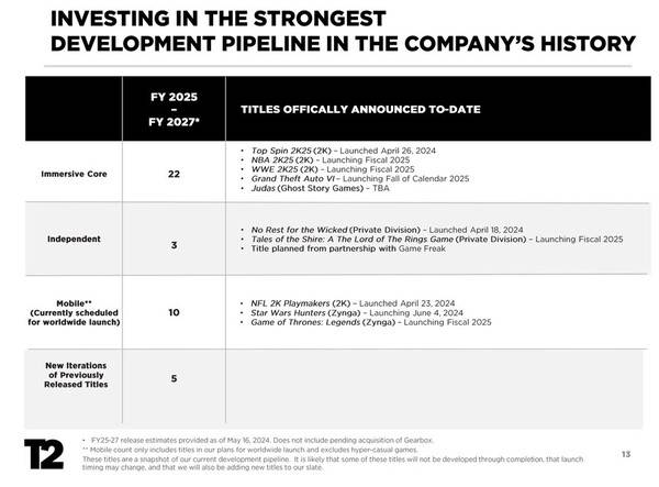그러던 중 반가운 소식이 들려왔다. 테이크투인터랙티브는 15일 2024 회계연도 재무 보고서로 GTA6를 2025년 가을 중 선보일 것이라며 출시일 범위를 좁혔기 때문이다. GTA6 외 신작 'NBA 2K25'와 'WWE 2K25'도 2025년 출시를 목표로 두고 있다.