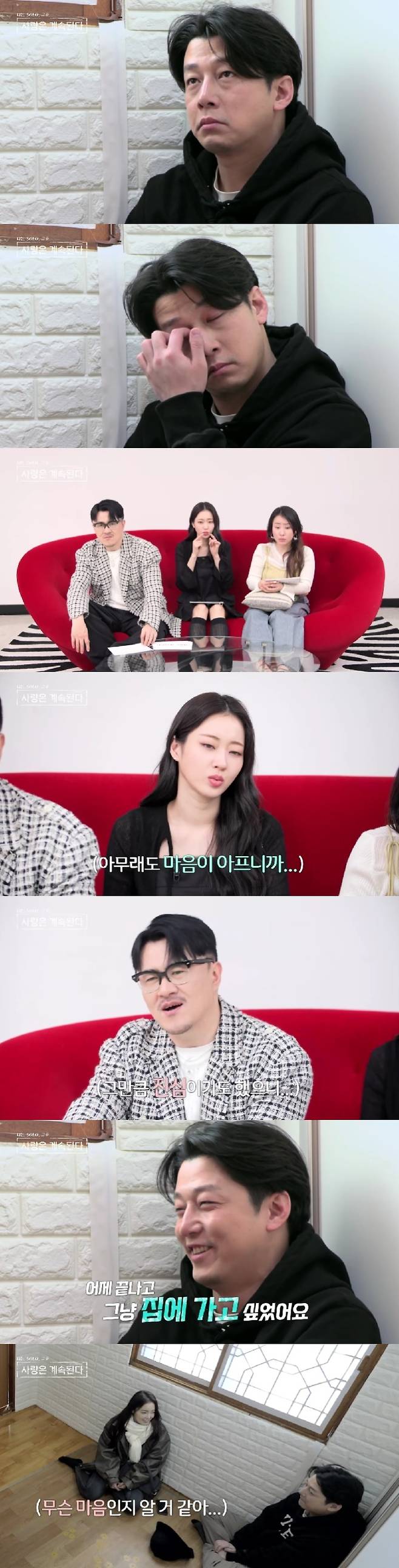 불편해진 11기 영식은 두 사람을 피해 옆방으로 들어갔고, 17기 영숙은 11기 영식의 뒤를 따라가, “(8기 옥순님이) 많이 신경 쓰이시냐?”라고 물었다. 11기 영식은 “지금은 얘기 안 하고 싶다”며 한숨을 내쉬고 눈물을 글썽거렸다.