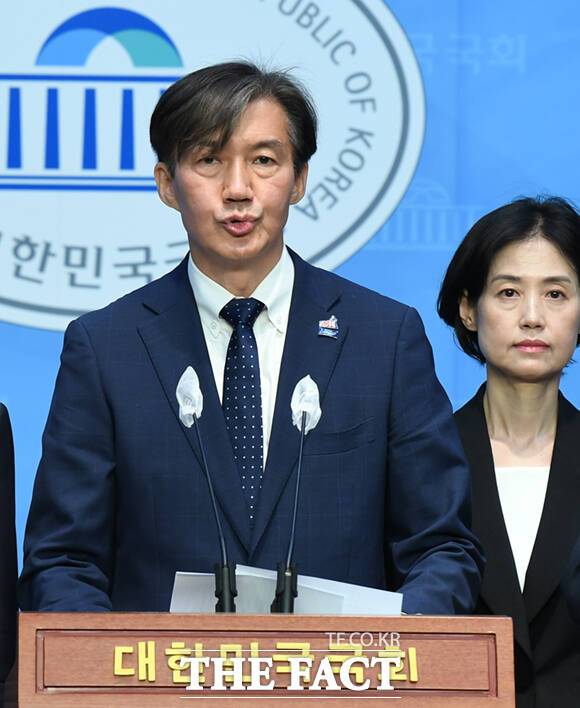 조국 조국혁신당 대표와 당선인들이 17일 오전 서울 여의도 국회 소통관에서 개헌특위 설치 및 제7공화국 개헌 제안관련 기자회견을 하고 있다.