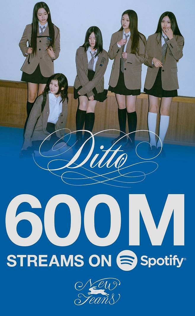 세계 최대 음원 스트리밍 플랫폼 '스포티파이'에 따르면, 뉴진스는 싱글 앨범 'OMG'의 수록곡 '디토'로 지난 15일 기준 6억 21만 1,727회 재생됐다.