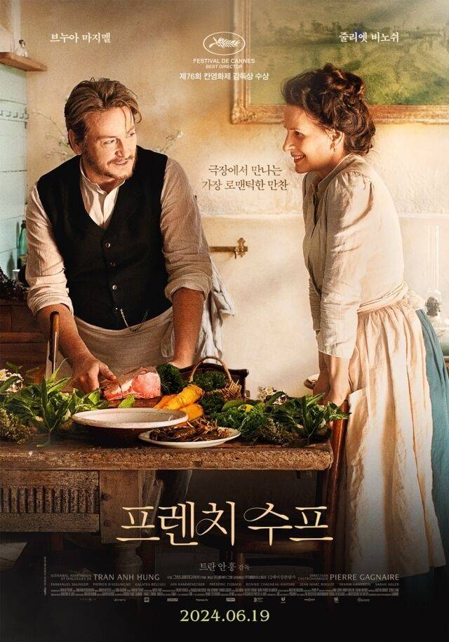 '프렌치 수프'는 20년간 함께 요리를 만들어온 파트너 외제니와 도댕의 클래식 미식 로맨스. '그린 파파야 향기'로 제46회 칸영화제에서 황금카메라상을 수상했던 트란 안 훙 감독의 신작이다.