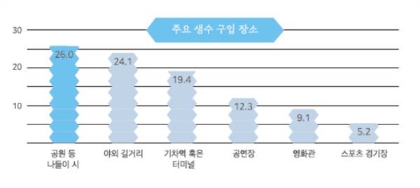 | ▲ 주요 생수 구입 장소(다중이용시설과 공공장소에서의 식수 접근권 실태조사) |