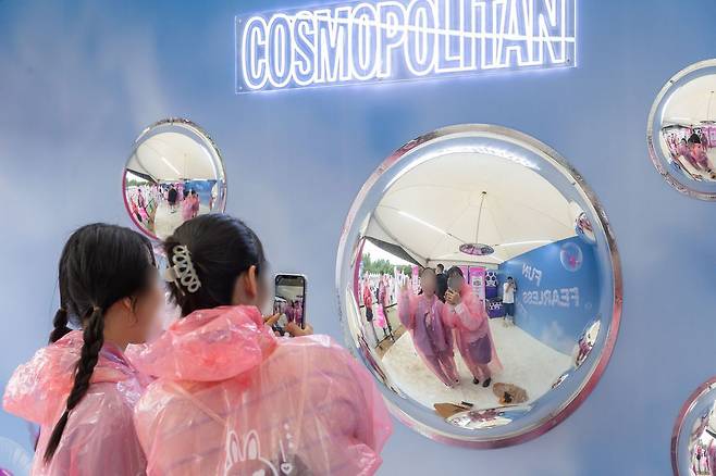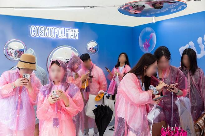 시선을 강탈하는 강렬한 핑크의 〈코스모폴리탄〉 부스 내부 공간은 구름, 비누방울 등 키치하면서도 몽글몽글한 무드로 꾸며져 ‘겉바속촉’ 반전 매력을 선사하기도. 부스 한편에는 MZ세대에게 인기인 천장 거울부터 볼록 거울까지, 다양한 소품을 세팅한 포토존이 마련되어 관객들로 붐볐다.