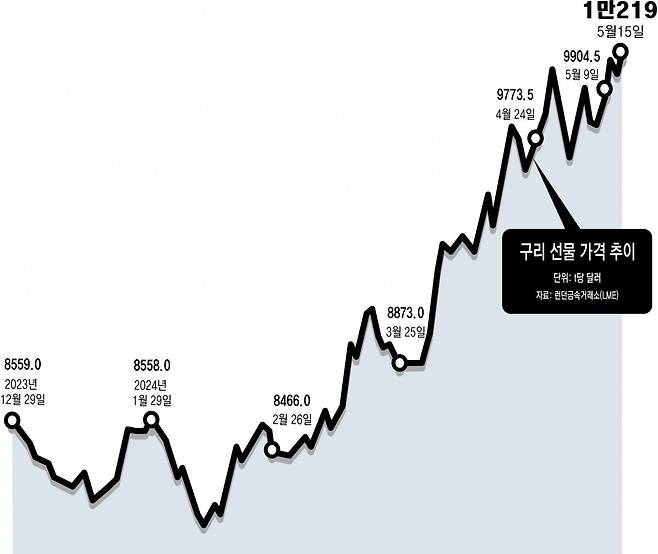 ● 금보다 높이 뛴 구리… 역대 최고가 돌파 예상도