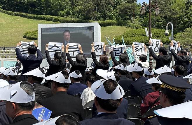 이를 본 대통령실 경호처 관계자들이 급히 달려와 제지하려 하자, 오월 유가족 등 행사 참석자들이 막아서면서 큰 소란으로 번지지는 않았다.