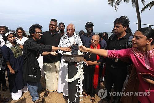 epa11349357 Civil rights activists light a flame to commemorate civil war victims during a remembrance event for those who died during the final stage of the civil war, at a seafront in Colombo, Sri Lanka, 18 May 2024. Sri Lanka ended a decades-long civil war in May 2009. EPA/CHAMILA KARUNARATHNE