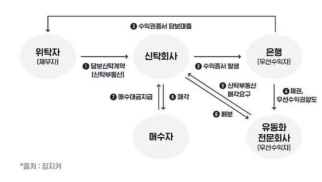 둘째, 담보신탁이 걸린 경우이다. 지난해 3월, 인천광역시 계양구의 한 오피스텔의 임차인은 임대인이 신탁등기한 사실을 모르고 계약하였다가 '불법 점유자' 신세가 되어 신탁사로부터 집을 비워달라는 통보를 받은 경우가 있다.