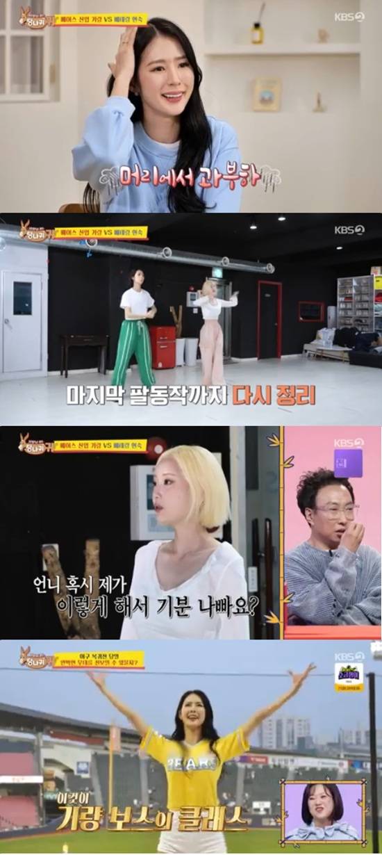 박기량은 야구 시즌 개막을 앞두고 연습실을 찾았다. 박기량은 후배들과 함께 20대 초반 시절의 영상을 찾아봤다.