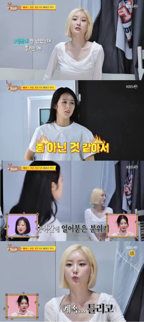 박기량은 "나 3일 뒤에 너무 완벽하게 할 수 있다"고 했지만 서현숙은 "이렇게 틀리는 데 어떻게 100%를 하느냐"고 불편한 심기를 드러냈다.