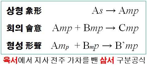 어떤 한자가 상형 회의 형성 중 무엇에 따라 이루어진 한자인지 삼서 구분공식에 의해 헤아리면 그 한자가 왜 그런 의미와 발음을 지닌 한자인지 알게 된다.