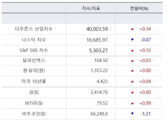 특히 지난주 4월 소비자물가지수(CPI)가 둔화하는 모습을 보이면서 금리 인하 기대감 등에 뉴욕 3대 지수가 모두 사상 최고치를 기록했다. 특히 다우존스 지수는 사상 처음으로 4만을 돌파하기도 했다.