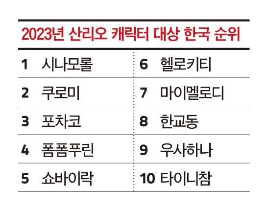 전 세계 1000대만 출시한 TV처럼 희소성 있는 제품들도 눈에 띕니다. “지금 가지고 있는 시나모롤·폼폼푸린 등도 헬로키티처럼 오십 살이 될 때까지 버리지 마세요. 저도 어릴 때 가지고 있던 걸 다 버렸는데 그래서 여기에 전시되지 못하고 있죠. 잘 보관하면 우리가 사랑하는 제품들도 나중에 회사의 역사가 되고 전시가 될 수 있어요.” 1996년도에 나왔던 연핑크 색 가방 시리즈도 시선을 사로잡았죠. “약간 명품 브랜드 샤넬 느낌 나지 않나요. 광택이 도는 소재가 고급스러운 느낌이 들어 명품 브랜드를 사지 못하는 10대 소녀들이 산리오 매장에 가서 이걸 다 쓸어 모아 품귀 현상이 일어나기도 했죠.” 1986년 산리오는 팬들이 산리오 캐릭터들의 인기투표를 진행하는 ‘산리오 캐릭터 대상’을 처음 시작했는데요. 2023년에는 전체 득표수가 4448만 표가 넘을 정도로 전 세계 많은 팬이 참여하죠. “90년대 들어 헬로키티 인기가 밀리기 시작해요. 근데 이 가방 시리즈가 나오면서 갑자기 그 판도가 바뀌고 헬로키티가 10여 년 동안 1위의 자리를 차지할 수가 있었습니다.”