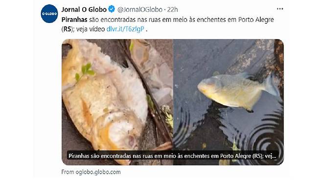 17일(현지시간) 브라질 매체 오글로부와 G1 등에 따르면 전날 히우그란지두술주(州) 중심 도시인 포르투알레그리 내 침수 지역에서 피라냐가 잇따라 발견됐습니다.