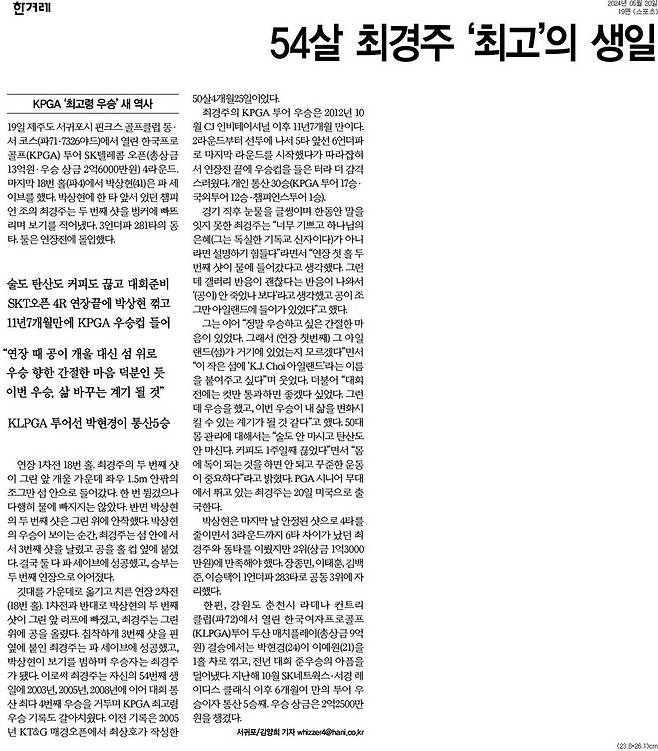 # 노익장 최경주(54), 황석영(81), 최불암(84)