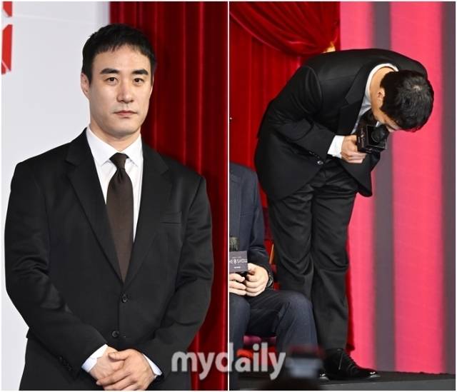 [마이데일리 = 송일섭 기자] 배우 배성우가 10일 오전 서울 장충동 앰배서더 서울풀만호텔에서 진행된 넷플릭스 시리즈 '더 에이트 쇼' (극본/연출 한재림) 제작발표회에서 음주운전 사과를 하고 있다.