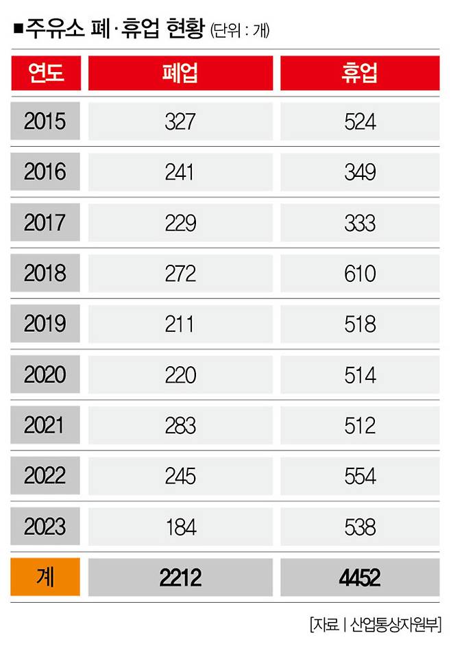 # "주유소는 폐업하는 것도 어렵다. 위험물저장시설인 만큼 철거 규정이 까다롭고, 토양정화비용도 지불해야 해서다. 그래서 돈이 없어 폐업을 못하는 주유소가 숱하다. 정부가 지원책을 마련해줘야 한다." 주유소 업계가 10여년 전부터 이어온 주장이다.