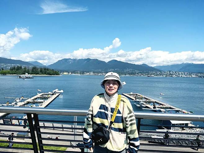 사진 속 안영미는 남편이 있는 미국에서 시간을 보낸 모습. 맛있는 음식도 먹고 여러 곳을 구경하며 즐거워하고 있다. 한국으로 돌아오는 출국장에서는 '충청도'라고 적힌 옷을 입고 있어 시선을 끈다.