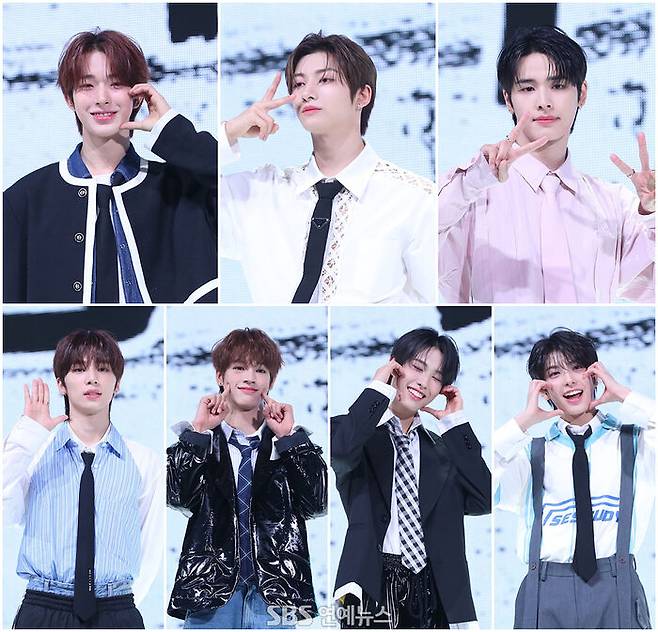 [SBS연예뉴스 | 백승철 기자] 그룹 넥스지(NEXZ)의 토모야(왼쪽 위부터 시계방향), 유우, 하루, 유키, 휴이, 세이타, 소건이 20일 오후 서울 광진구 예스24라이브홀에서 열린 데뷔 싱글 'Ride the Vibe' 발매 기념 미디어 쇼케이스에서 포토타임을 갖고 있다.