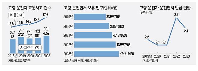 2022년 기준 65세 이상 운전자가 가해자인 교통사고는 3만4652건으로 통계 집계 이후 최고치를 기록했다. 전체 교통사고에서 차지하는 비율도 17.6%로 1년 전(15.7%)보다 늘어났다. 현재 정부는 고령자 면허 관리를 위해 운전면허증 반납 제도를 운영하고 있다. 운전면허증을 반납하면 인센티브를 제공하는 식이다. 그러나 실제 면허 반납률은 2% 안팎으로 저조하다.