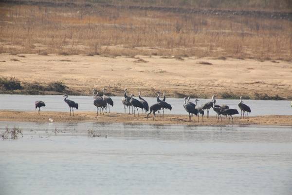 | ▲ 훅두루미가 내려앉아 모래톱에 쉬고 있는 모습이다. 2013년에 찍은 모습. |