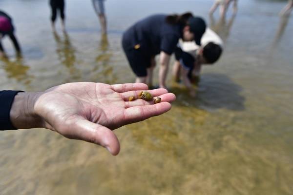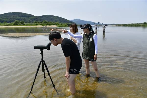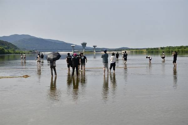 꼬마물떼새와 쇠제비갈매기가 내는 울음소리 가득한 이곳에서 물장구도 치면서 아이들은 강을 오롯이 느껴봤다. 비록 시간 제약으로 긴 시간 머무를 수 없었고, 이곳의 또다른 주인인 물고기도 만날 수 없었지만, 이곳을 다시 찾기로 약속하며 아쉬움을 달랬다.