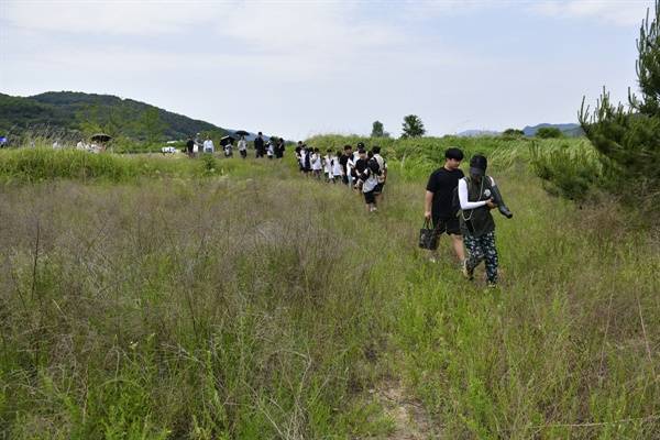 20일 구미시 해평면의 해평중학교 학생들이 '낙동강을 배우겠다'며 찾아왔다. 해평중은 낙동강과 가장 가까운 학교 중 하나다.