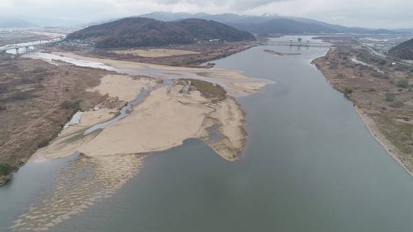 그래서 그 삼각주에 해당하는 곳은 넓은 모래톱이 만들어지고 그 위를 낮은 강물이 흐르는, 즉 이전 낙동강의 모습을 되살려냈다.
