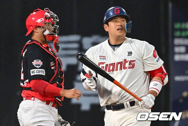 롯데 자이언츠 유강남이 4회말 1사 2루 삼진 아웃당하고 아쉬워하고 있다. 2024.05.21 / foto0307@osen.co.kr