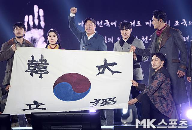 정성화와 뮤지컬 영웅 팀이 공연을 하고 있다.