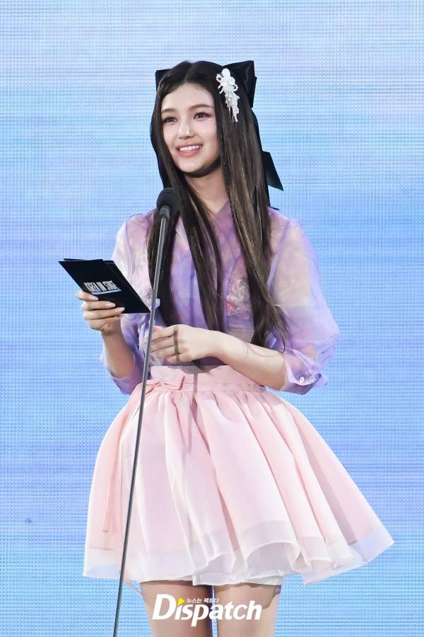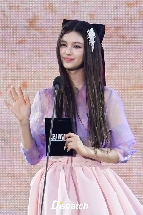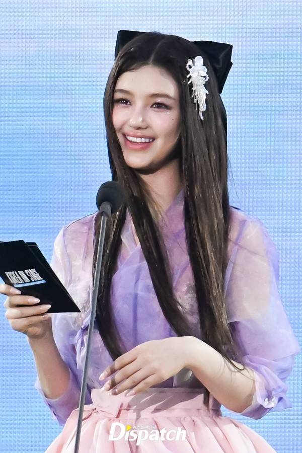 '뉴진스' 다니엘은 이날 단독 진행을 맡았다. 퓨전 한복을 곱게 차려입었다. 아름다운 미모가 돋보였다.